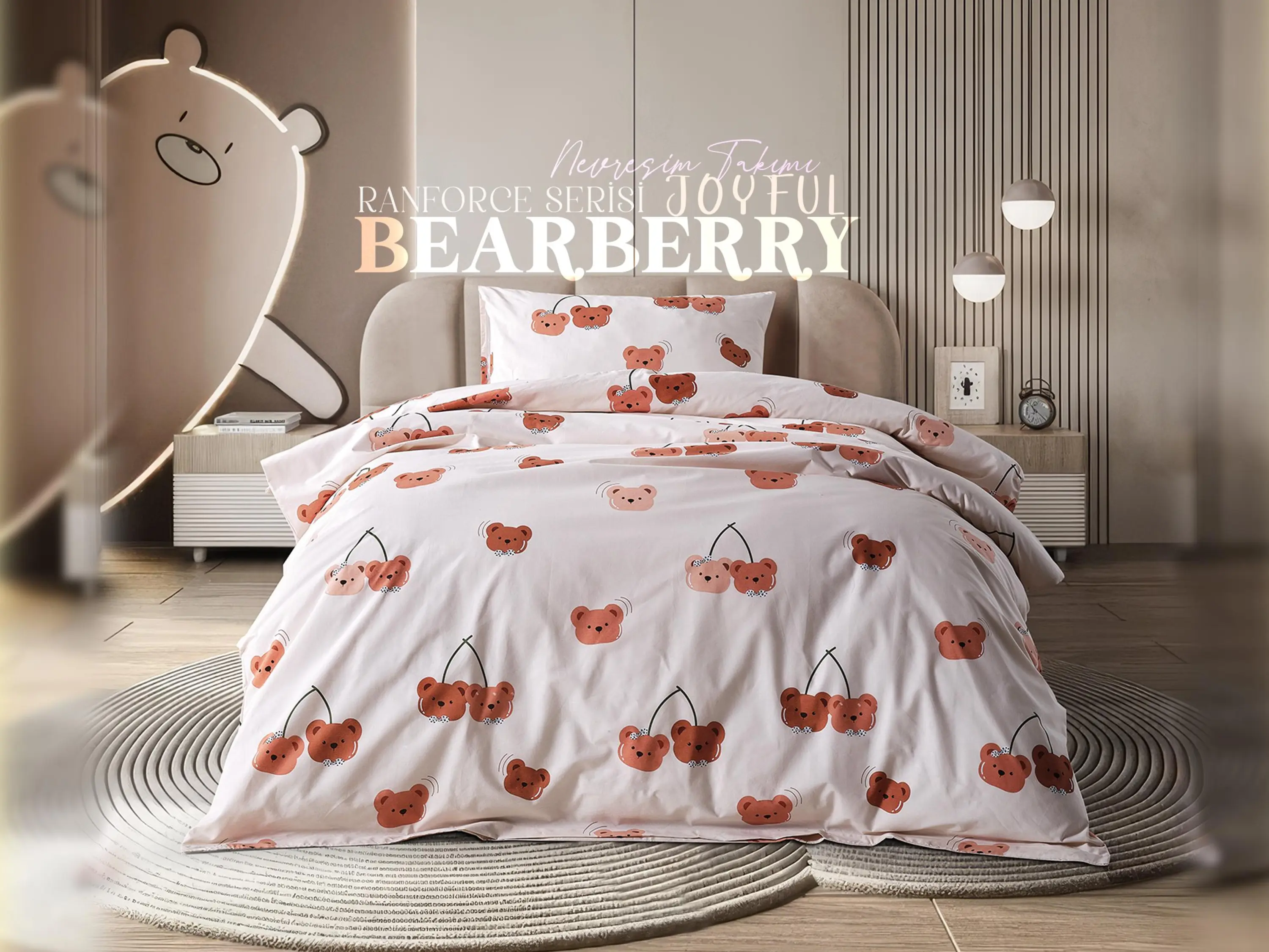 - Ranforce Joyful Bearberry Nevresim Takımı Tek Kişilik